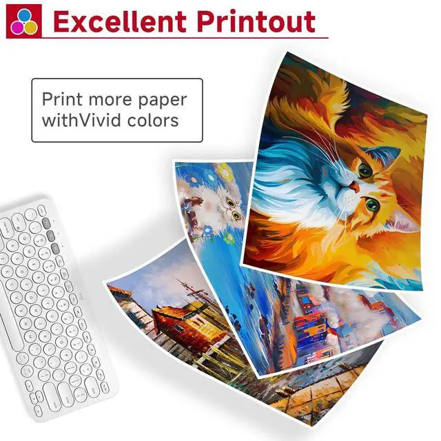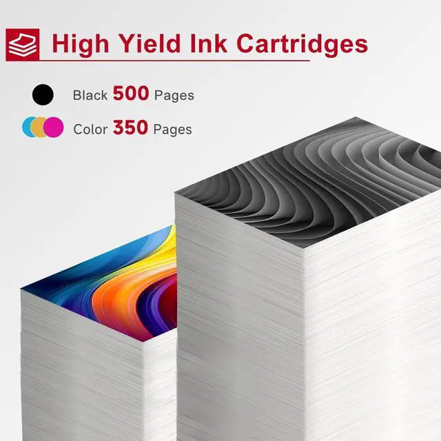 High Page Yield: 500 pages per black ink cartridge, 350 pages per color ink cartridge ^^ Inkject 1.5 times more ink than the original cartridge