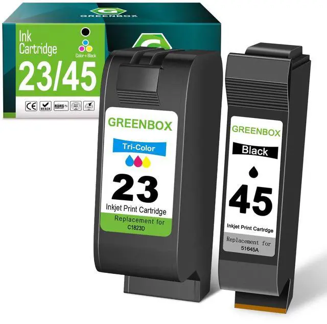 What in the box: 2 Pack Greenbox Remanufactured 45 23 Ink Cartridges (1 Black 1 Tri-Color) ^^