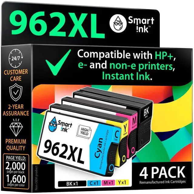Experience next-level printing with the Smart Ink Remanufactured 962 XL cartridge, fully compatible with e-series printers, HP+, and HP Instant Ink-activated printers. ^^ Feel Confident in
