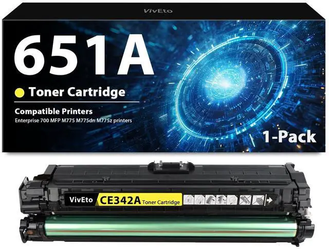 Contents: VivEto toner replacement for HP 651A CE342A toner cartridge; 1 X 651A CE342A yellow toner cartridge ^^
