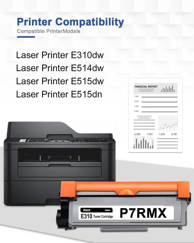 High Page Yield: 3, 000 pages per Black E310dw P7RMX Toner cartridges (based on 5% coverage) ^^ Outstanding Performance and