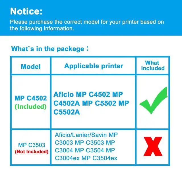 • Compatible Printers: Replacement for Ricoh Aficio MP C4502 MP C5502 MP C5502A