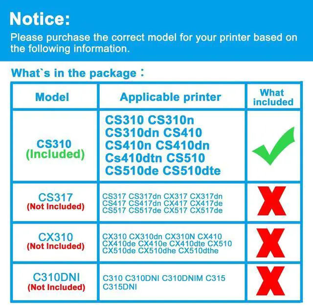 ^^ Compatible Printers: Replacement for Lexmark CS310 CS310n CS310dn CS410 CS410n CS410dn Cs410dtn CS510 CS510de CS510dte ^^