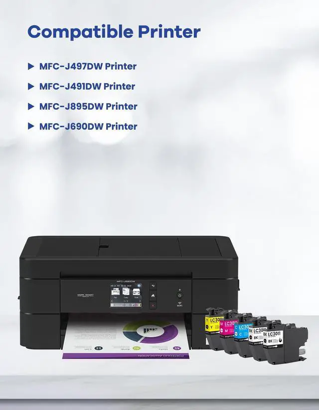 The Package Contains: LC3011 BK/C/M/Y Ink Cartridges 5-Pack (2x Black, 1x Cyan, 1x Magenta, 1x Yellow) LC3011BK LC3011C LC3011M LC3011Y ^^ Compatible with Brother MFC-J497DW, MFC-J491DW, MFC-J895DW, MFC-J690DW Printer ^^