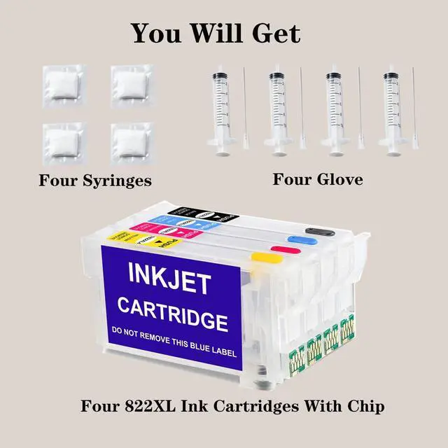 ^^ Convenient replenishment: Our 822XL sublimation ink cartridge is designed with a white transparent shell, so that you can more clearly observe the ink filling amount and daily ink usage. Using the attached ink replenishment tool can make it easier for you to replenish ink for the ink cartridge. ^^ When the printer displays the warning message of non-genuine ink, please select "Yes" to use this heavy water. When the printer shows that your ink cartridge is empty, you only need to take it out of the printer, replace it with a new chip, fill it up ink, and then reinstall it.
