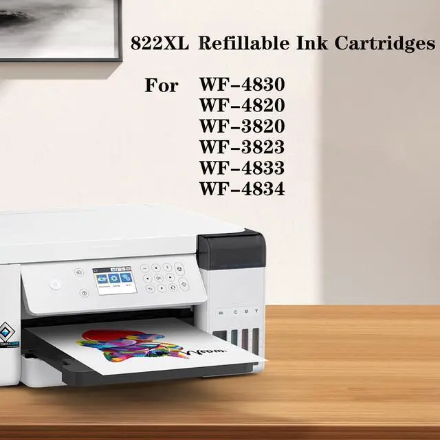 ^^ Good compatibility: Our 822XL ink cartridge works well with the WF-3820 WF-4820 Wf-4830 Wf-4833 Wf-4834 printer. Please confirm your printer and ink cartridge type before buying.