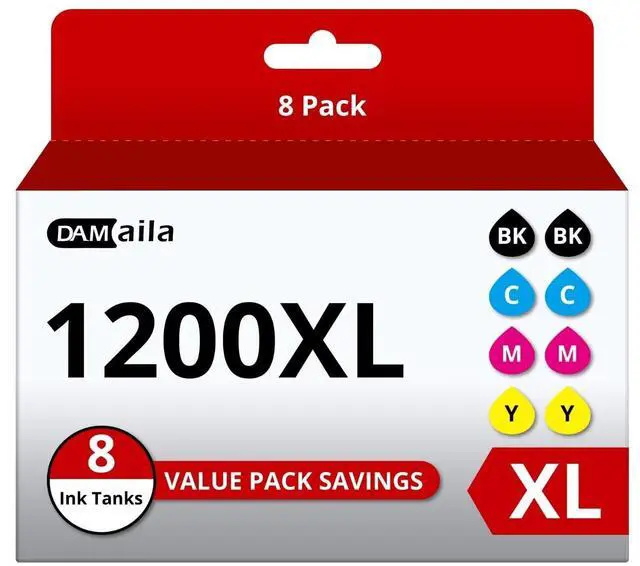 Packing List: total 8 pack of 1200xl ink cartridges (2 Black, 2 Cyan, 2 Magenta, 2 Yellow).