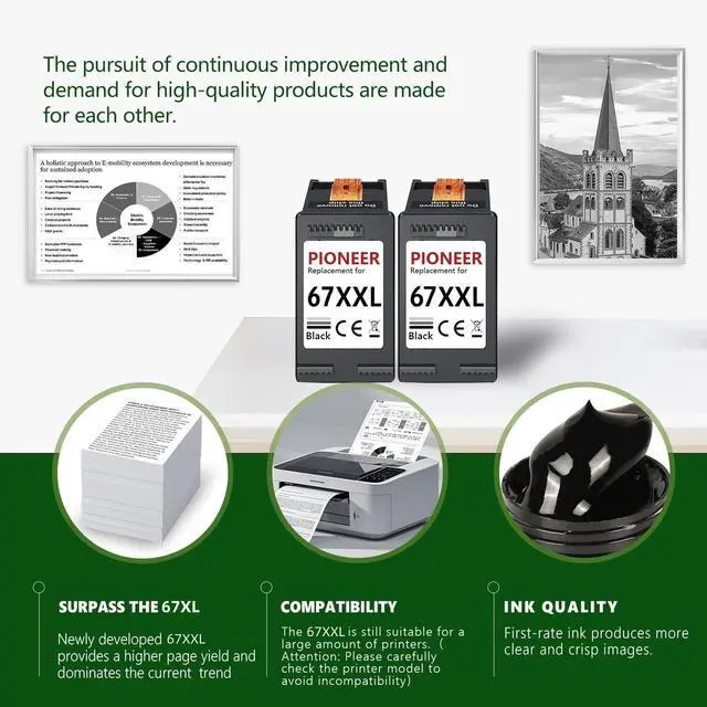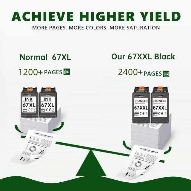 High Quality Printing: PFKink Ink Cartridge 67XXL combo pack adopts high-quality raw materials to minimize the damage of pollution. At the same time, advanced pigment making process technology is adopted to improve the brightness and saturation of color, make the text printing clearer, and make the pattern printing lifelike and vivid on the paper. The printed product will satisfy you ^^ 5. PFKink 67XXL ink cartridges have a strict control before leaving the factory and obtained ISO9001 and MSDS Certificate Approved