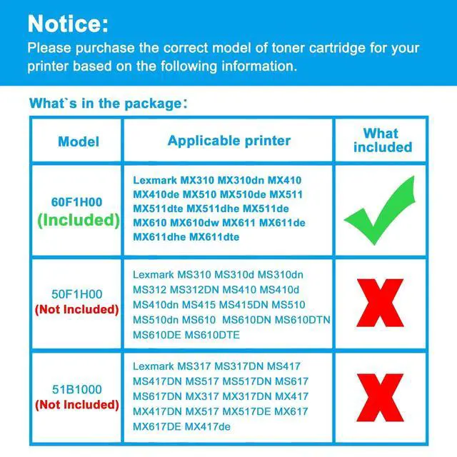 ^^ Compatible Printers: Replacement for Lexmark MX310 MX310dn MX410 MX410de MX510 MX510de MX511 MX511dte MX511dhe MX511de MX610 MX610dw MX611de MX611dhe MX611dte MX611dfe ^^