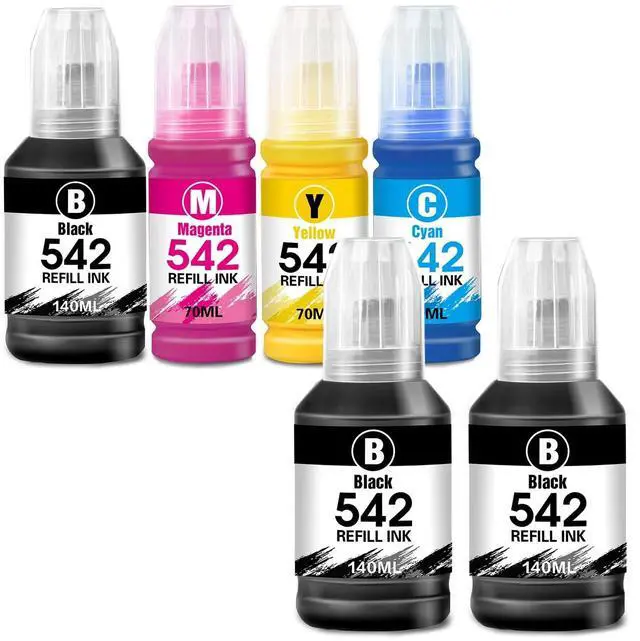 • :Total 6 bottles of 542 ink refill bottles (3 x 542 Pigment Black ink 1 x 542 Pigment Cyan ink1 x 542 Pigment Magenta ink1 x 542 Pigment Yellow ink)
