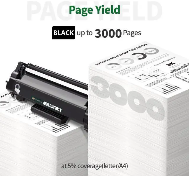 Page Yield: TN-760 toner cartridge black high yield is up to 3000 pages per cartridge at 5% coverage (letter/A4) ^^