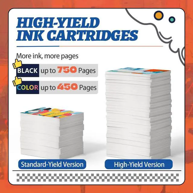 Print Quality: Create high-quality color photos and everyday documents with our printer ink 63xl ink cartridge combo pack which deliver vivid color and crisp, sharp text. Easily complete your projects. ^^ OurCompatible 63xl ink cartridges black and color are specially designed to work with your