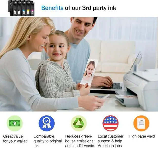 - Cartridges come filled with a new generation chip, work with all new printers, and display ink levels. We offer a hassle free money back guarantee.