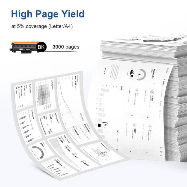 High Page Yield: Up to 3, 000 pages per TN830XL toner cartridge (Letter/A4, at 5% Coverage, depends on printer and usage) ^^