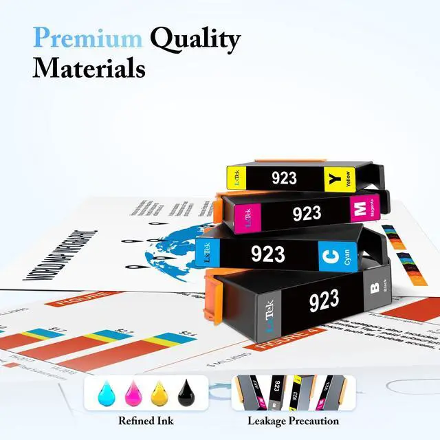 Guide ^^: LxTek for HP ink 923xl combo pack compatible for OfficeJet 8120e 8122e 8124e 8125e OfficeJet Pro 8130e 8132e 8134e 8135e 8138e 8139e ^^: Up to 500 Pages for HP 923 black ink cartridges and 400 Pages for HP 923 color ink cartridges based on 5% coverage (Letter/A4) ^^ LxTek ink cartridge replacements for HP 8130e ink cartridges for HP officejet pro 8130e ink cartridges are strictly tested with industry quality control processes to perform superb results.