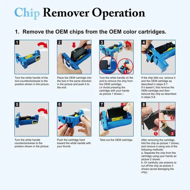 ( ): Make sure you have the OEM 923 ink cartridges for hp s and follow the instructions to remove the chip from OEM toner and install it to our product. (