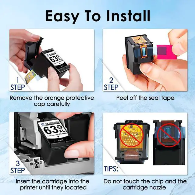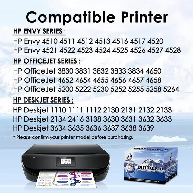Package includes: 1 x User Guide1 x 63XL Black Ink Cartridge1 x 63XL Color Ink Cartridge Double D -- Your wise choice! 1. Each 63XL ink was installed the first-class professional chip, which guarantee 100% compatibility with the printer. 2. Low-density ink enhances fluidity and prevents print head clogging. Professional printing effect, showing the most realistic colors. 3. Each printer ink 63XL was packed in individual plastic bag. Multi-layer protective packaging to prevent the cartridge from being damaged during transportation, convenient and easy-to-install on demand. 4. Double D 63 ink cartridges have passed multiple quality inspection standard certifications. Exclusive formulated ink ensure the vivid color vibrancy and long-lasting prints.