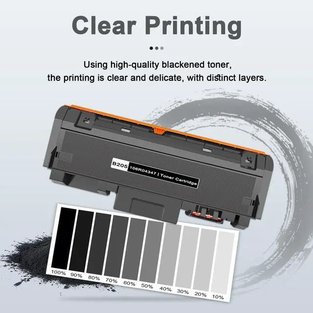 High Page Yield: Up to 3500 pages per B205 Black Toner cartridge(Letter/A4, at 5% coverage) ^^ Our 106R04347 black toner cartridge produces crisp, dark text with no fading or streaking, making it ideal for professional business documents that require sharp, readable text quality ^^