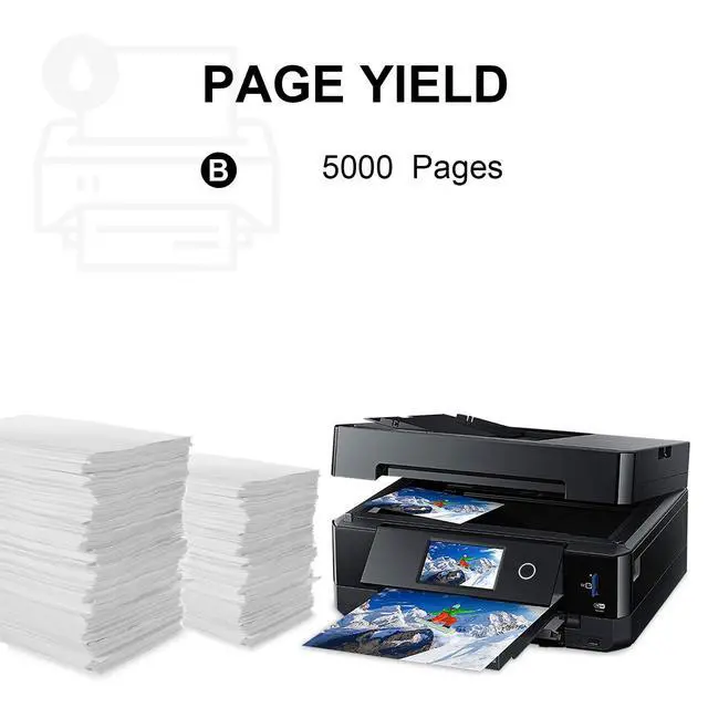 Yield Page: Black up to 5000 pages at 5% coverage (Letter A4) ^^ High Yield Remanufactured for Epson 902 T902xl ink cartridge (1Black; 1-Pack): 1X Black T902XL120 ^^