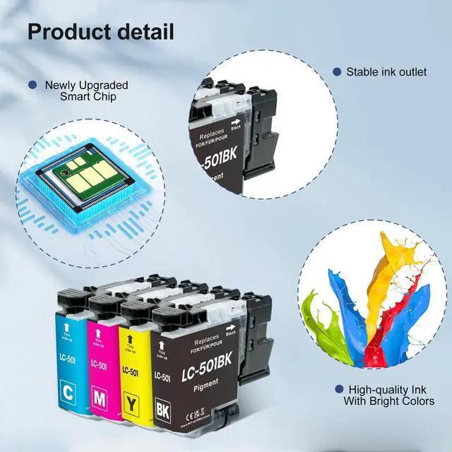 Newly Upgraded Chips: These lc 501 ink cartridges for brother printer mfc-j1360dw ink cartridges are equipped with the latest upgraded chip, higher recognition, provide ink level checking at any time ^^