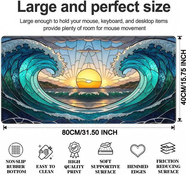 • Large and Extended SizeThe size of this XL large mouse pad is 31.515.8 inch,which is big enough to fit your full-sized keyboard, mouse, laptop,or other item on the desk,providing more space for professional gaming or office work. Besides,you can also use this extended mouse pad as a desk pad,writing pad,platform protection mat. Keep your desk clean and uncluttered.