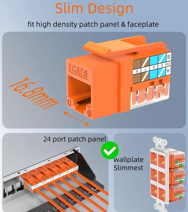 ^^ High-density Application: The slim size cat 6 jack is used for data center and other high-density environments where space is limited. Cat 6a keystone jack is Available in various colors, flexible for organizing and managing different network segments or services.