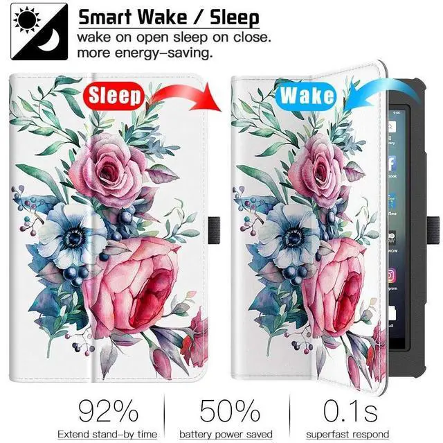 [Compatible with]: Perfectly fits Fire 7 Tablet (9th Generation, 2019 Release). Convenient stand position for watching movie or typing. Perfectly for your trip, work and studying ^^ [Auto