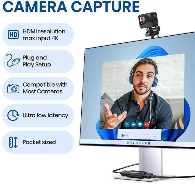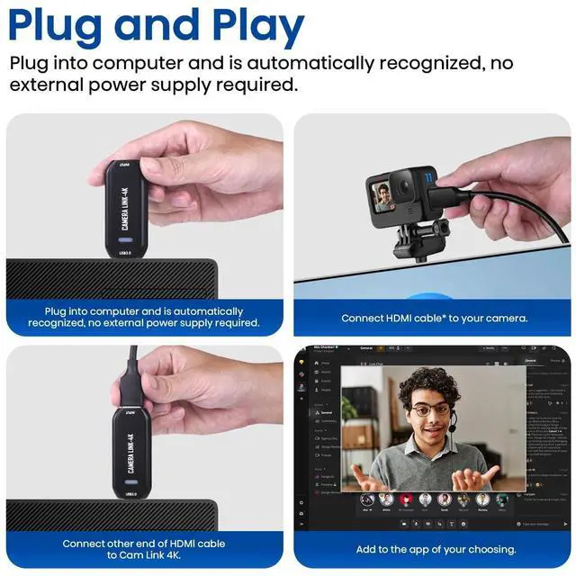 Turn Your Camera into a Pro Webcam Connect your DSLR, camcorder, or action cam to your Mac or PC and transform it into a high-quality webcam. Go live on YouTube, Twitch, Facebook, and more with crystal-clear video. ^^ Stunning Image Quality Stream and record in smooth 1080p60 or even up to 2K50 resolution. Capture every detail with vibrant clarity for a professional on-screen presence. ^^ Ultra-Low Latency PerformanceEnjoy instant, real-time audio and video transmission with virtually no lag. Perfect for livestreams, gaming, video calls, and online teaching.