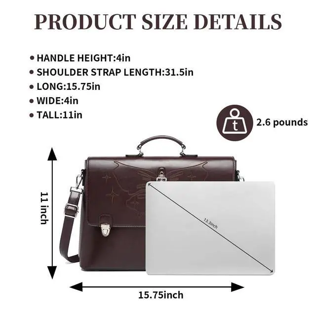 PREMIUM MATERIAL: Crafted from genuine leather, the internal material is polyester fiber. This handbag has the good hand feel, glossiness, this professional bag offers durability and timeless style for daily business use.