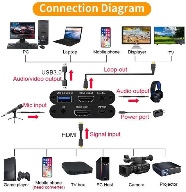 Audio Mixing]: Add live commentary effortlessly. The dedicated 3.5 mm mic input and audio output ports let you mix game audio and your voice clearly, solving common audio sync issues with simple OBS settings. ^^ [Universal Compatibility for