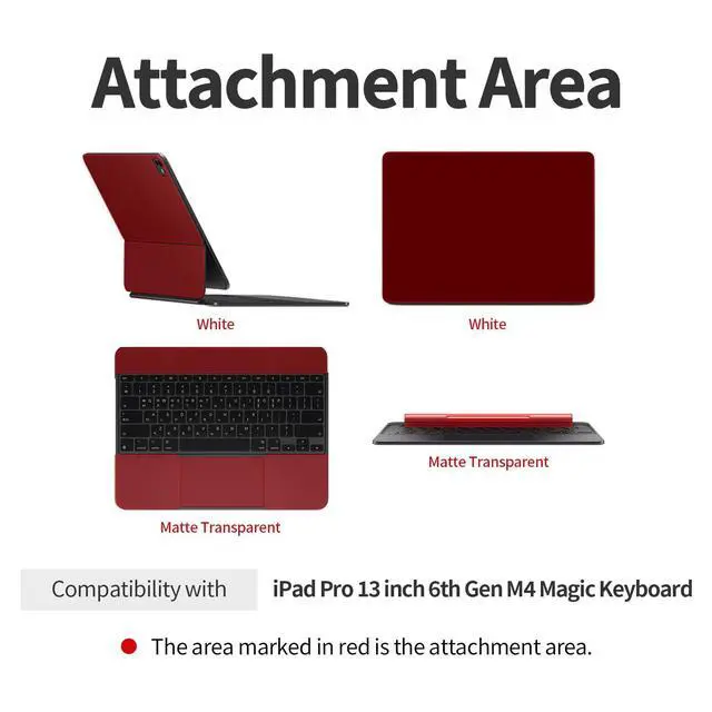Introducing the iPad Pro 7th Generation Magic Keyboard Skin Cover. Designed exclusively for the iPad Pro 7th Generation Magic Keyboard, we have chosen the most suitable fabric to amaze you. This cover offers a perfect fit, nearly identical to the original color, with a transparent matte fabric for the palm rest area that maintains the aluminum feel of the Magic Keyboard without compromising its original appearance. ^^ We have identified vulnerable areas prone to scratches on the iPad Pro 7th Generation Magic Keyboard Skin. The hinge area, made of aluminum, can get scratched from contact with surfaces.