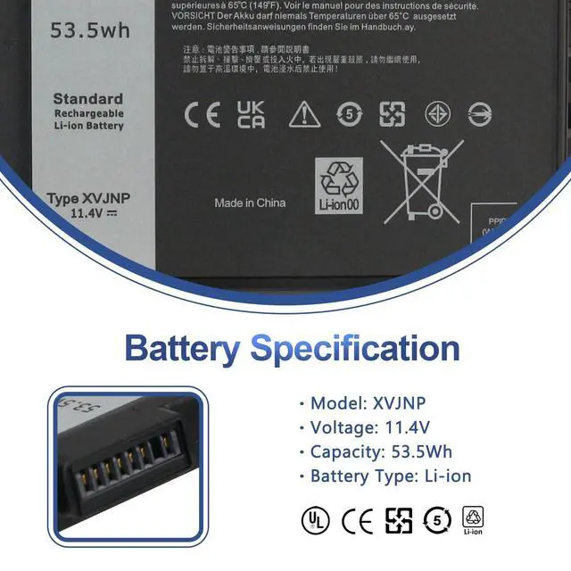 Condition: Brand new, from high quality materials, top circuit boards and smart chip. ^^ Replace Part NumberFit for XVJNP 6JRCP 06JRCP M0TN3 0M0TN3 KD1CT 451-BCWQ. ^^ Compatible Laptop ModelsCompatible with Dell Latitude 7330 Rugged Extreme Laptop P149G P149G001/Dell Latitude 5430 Rugged Extreme Laptop P148G P148G001 Series Notebook Battery. ^^ ANTIEE PromiseEach products has undergone rigorous testing to ensure the correct voltage, circuit protection, stable current, low self-discharge and CE / FCC / RoHS Certified for safety. About 500 recharge cycles over the life. ^^ ANTIEE After-sales30 days money back, 12 months of warranty!