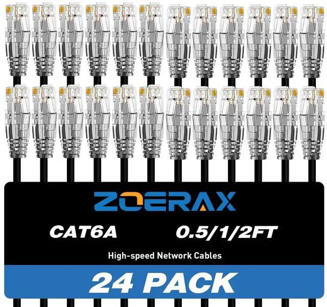 Short Runs: 28AWG slim Cat6a cables work best for patching up to 15m. Perfect for short connections, offering the same speed and reliability as standard Cat6a cables
