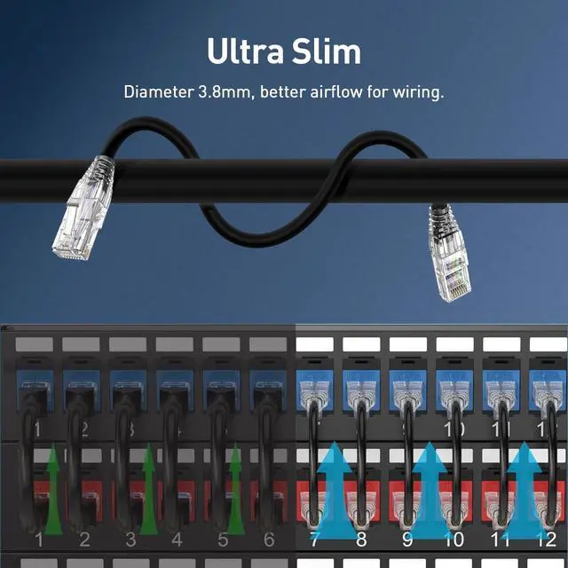 Better Airflow: With just 3.6 mm diameter, the slim Cat6a cable is lighter and thinner, helping reduce clutter while improving airflow and heat dissipation in racks or crowded spaces ^^ Ideal for
