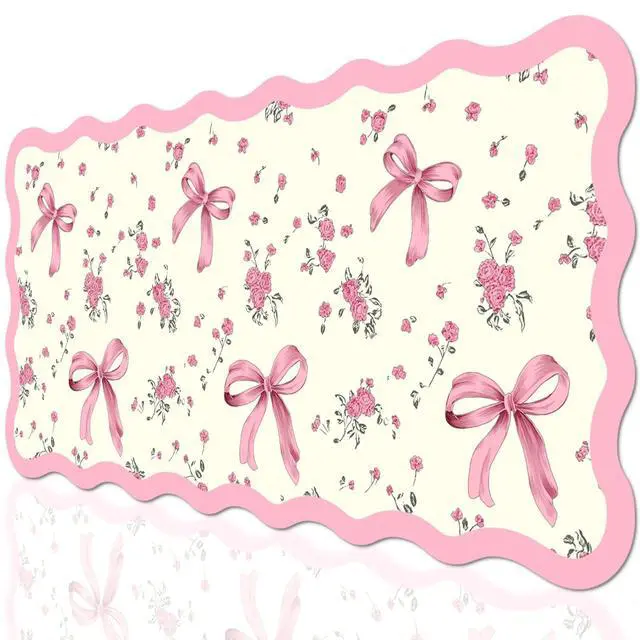 VibrantFruitique Pink Floral Bow Desk Mat, 31.5"x15.75" Large Mouse Pad, Anti-Slip Leather Computer Desk Pad for Keyboard and Mouse, Desktop Cover Protector Office Accessories Decor for Women