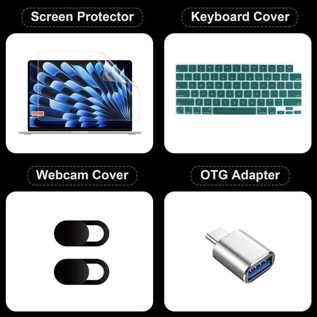 Package Included: 1 x Pro 14.2 -inch Case1 x Keyboard Cover1 x Screen Protector1 x OTG Adapter2 x Webcam Covers
