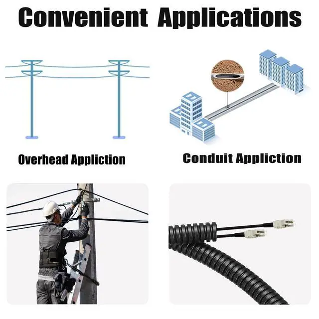 ^^ High-Speed Performance: The OM3 LC to LC outdoor fiber optic cable is designed for high-speed data transmission, supporting bandwidths of up to 100 Gbps, making it ideal for applications such as data centers, enterprise networks, and telecommunication systems.