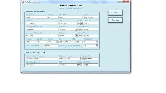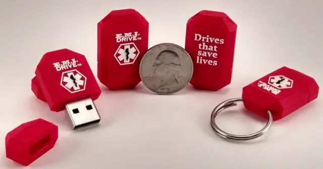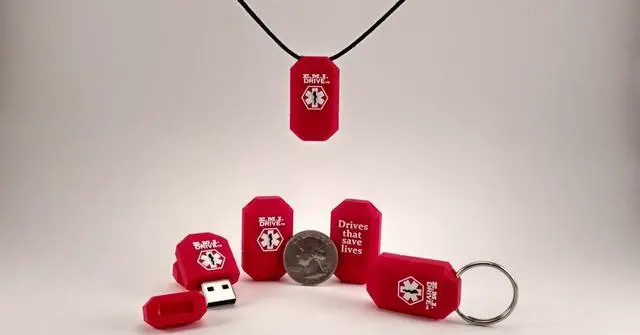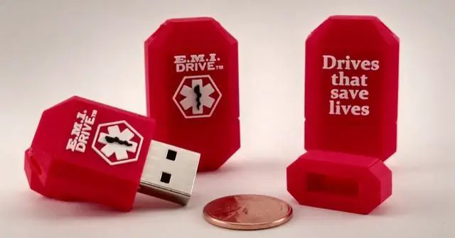 The E. M. I. Drive can provide in mere seconds emergency contact information, allergies, medications, medical history, height, weight, blood type, Primary Care Physician, even insurance information if desired. The preloaded Windows software will prompt and gather all basic information and allow for additional memos and notes. It's as easy as filling out a few forms. Then upon completion it will not only allow you print a paper form to have a hard copy on hand, but also store the Information automatically back to the drive itself in the form of a PDF.