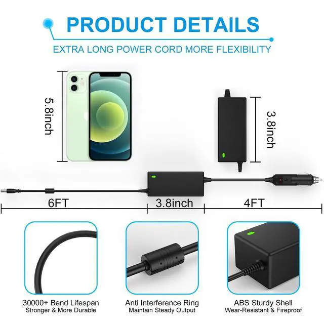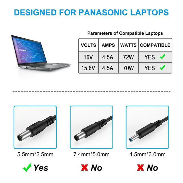 SAFETY & ETL LISTED: Replacement for Panasonic laptop car power cord Certified by ETL, CE, FCC and ROHS, is made of premium materials to ensure your laptop charges more securely and efficiently, including over-voltage protection, over-current protection, short-circuit protection and overheating protection and more. Equipped with 4 replaceable fuses, the charger will be more secure and durable ^^