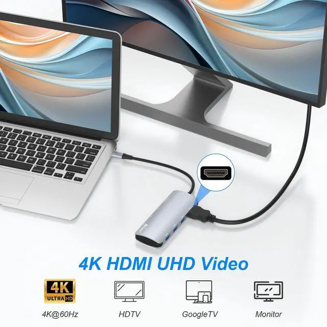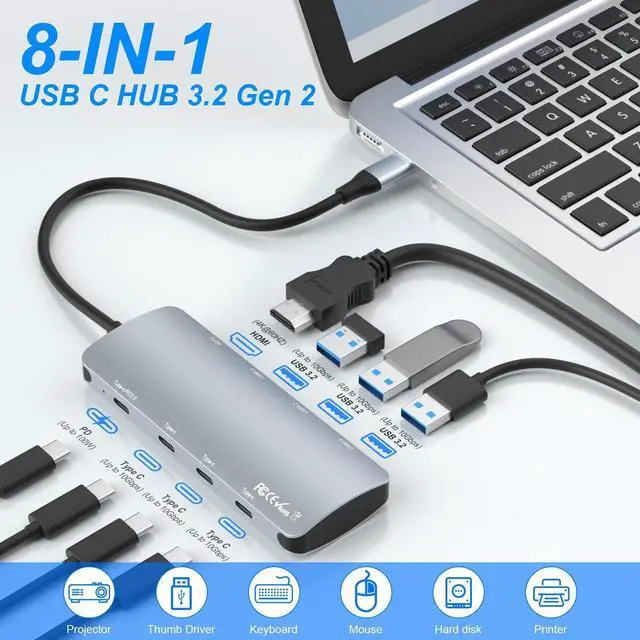[8-in-1 Multiport USB C Hub] Macbook USB C hub equipped with a USB-C 100W Power Delivery input port(charge & data transfer), 3 USB C and 3 USB A 10Gbps data ports, 1 HDMI port 4K@60Hz. All ports of the USB C hub can work at the same time, which perfectly solves the problem that the laptop only has one USB C port. ^^ [UHD 4K@60Hz HDMI Display] USB C to HDMI port supports media display with resolutions up to 4K@60Hz. Support mirror or extend your screen to HDTV, monitor or projector. An ideal Gadget for Video Editor, Watch Movies, Office Work.