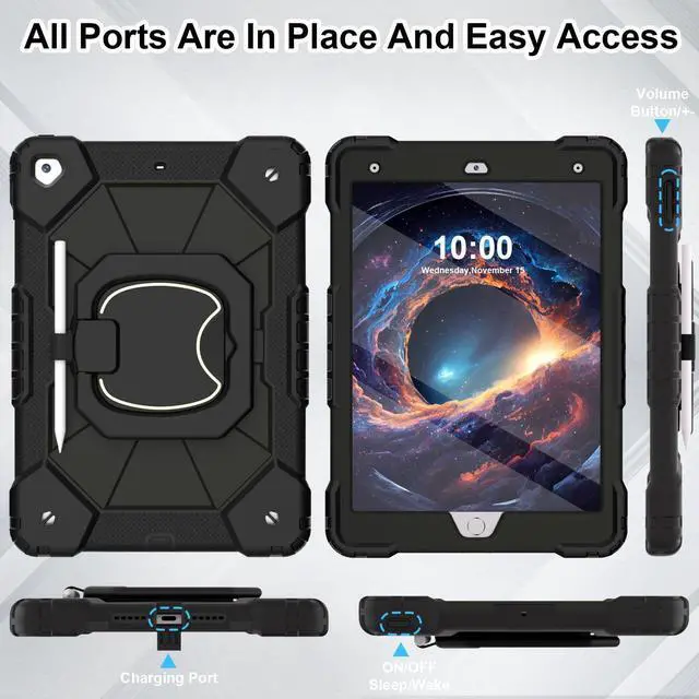 Generation 2019(Model: A2197/A2200/A2198). Please check your ipad to avoid the incorrect model number. ^^ 360 Rotating Stand & Folding HandleiPad 9th generation case with a multifunction handle that also rotating 360 and folds 180 to give you multiple angles between 30-80 degrees of horizontal or vertical orientation for easy viewing, typing or drawing. ^^ Pencil Holder & Adjustable Shoulder StrapiPad case 9th generation with pencil holder. Also offers adjustable shoulder strap, allow you use or carry much easier, perfect for a variety of people and occasions. ^^ Mil-Grade Drop ProtectionThe 9th gen iPad case is made of shockproof PC and soft silicone upgrad grade thickened corners & shock-proof design, with built-in screen protector to prevent daily scratches caused by rough surfaces or sharp objects and raised edges to protect camera, super shock absorption provides full body protection! ^^ Precise CutoutsiPad 9th generation kids case perfect fit all controls to easily access all iPad functions without taking out of the case. Great holiday/birthday gift for family and friends! ^^ Best ServiceIf you have any questions about this iPad case 10.2 inch iPad 9th generation case for kids, please feel free to email us, we will provide you with the fastest and best solution!