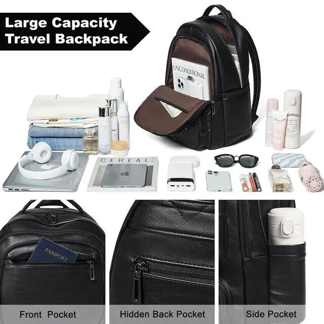^^ COMFY&STURDY: Travel backpack is made of soft PU leather with unique texture, which is comfortable and waterproof. And the handmade faux leather is durable and easy to clean. Equipped with durable metal fasteners and smooth zippers for long-lasting.