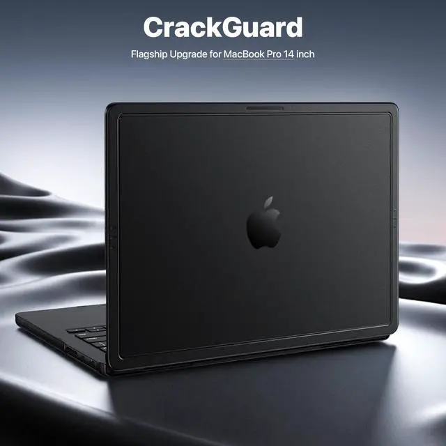 CrackGuard TechFlagship Upgrade, Molecular-level toughness to prevent corner cracks. 2-Density matte edges + infused elastic micro-particles, disperse corner stress and tackle cracking at its root ^^ Seamless Fit, Device-Safe PrecisionCompatible for MacBook Pro 14 inch 2025-2021 Release with M5 M4 M3 M2 M1 Pro /