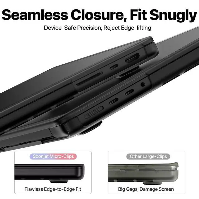 Max Chip (Models: A3434 / A3112 / A3185/ A3401 /A2992 / A2918 / A2779 / A2442). Our patented Micro-Clips lock securely and ensure a flawless fitNo gaps, edge-lifting, or screen interference. Vital for your MacBooks lifespan ^^ Official Space Black MatchHigh-transparency matte finish + Subtle Space Black tones, 100% match official color. Compatible with MacBook Pro 14 inch case, Apple logo shines through clearly, preserves the premium aesthetic with refined minimalism ^^ Triple-Defense FinishMatte texture + nano anti-fingerprint layer repels scratches, fingerprints, and oil. Easily wipes clean to keep your MacBook looking pristine ^^ Slim & SleekFull-Coverage protection in an ultra-thin, lightweight build, adds minimal bulk. Precision-aligned 1:1 vents along the sides and hinge, ensure efficient heat dissipation