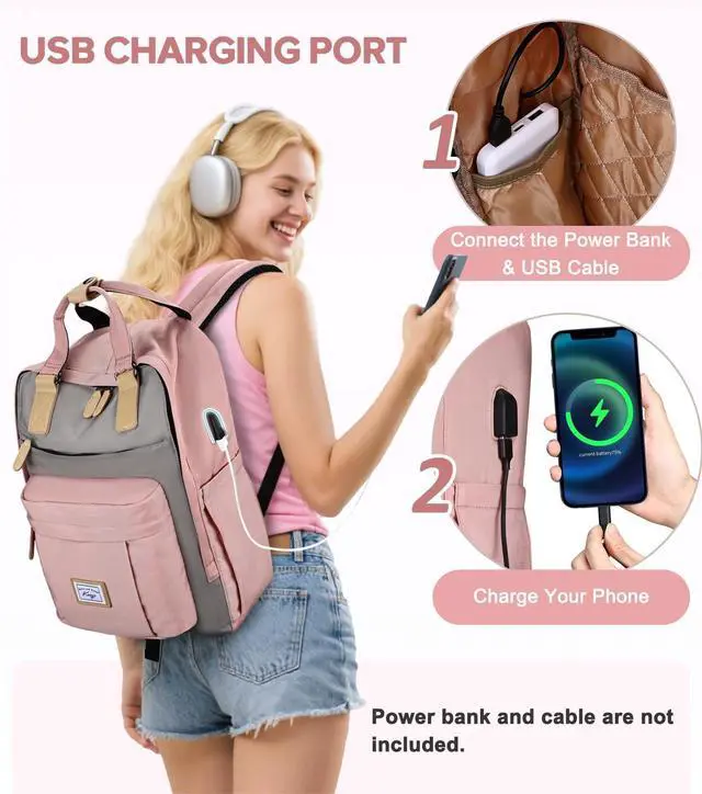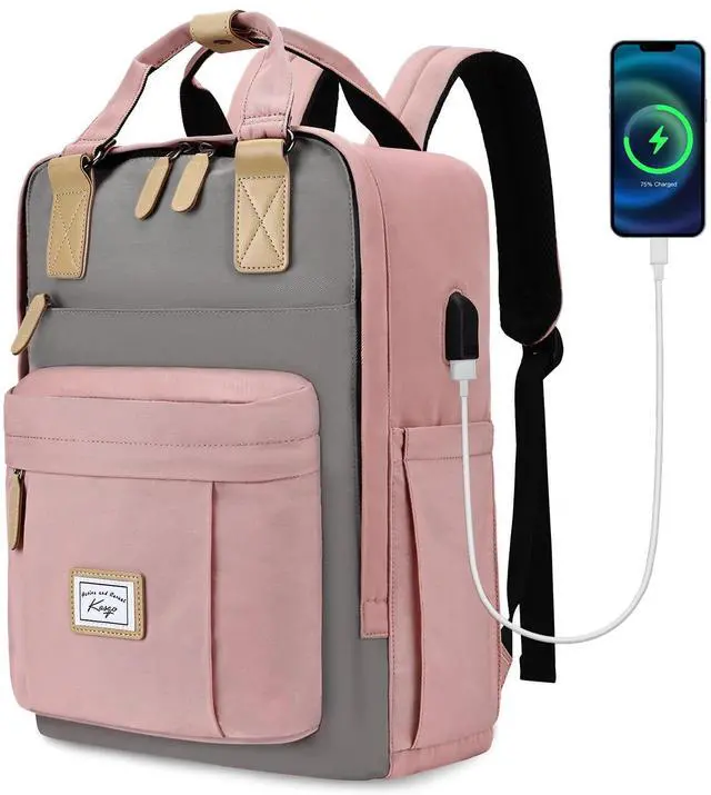 High Quality: Kasqo backpack is made of high quality, water-resistant and soft polyester material. The shape of this fashion backpack is rectangular, with two top leather buckle handles and a reinforced bottom. With a built-in USB cable design and two-way zippers wide opening design, you could charge your phone through the USB charging port on-the-go and take a quick access to your necessaries.