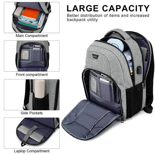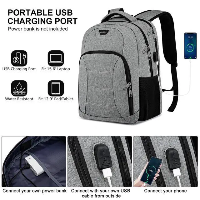 USB Charging Port Design: With an External USB charging port & set-in charging cable, this USB laptop backpack offers you a more convenient way to charge your phone while on the go. (Power bank NOT included).