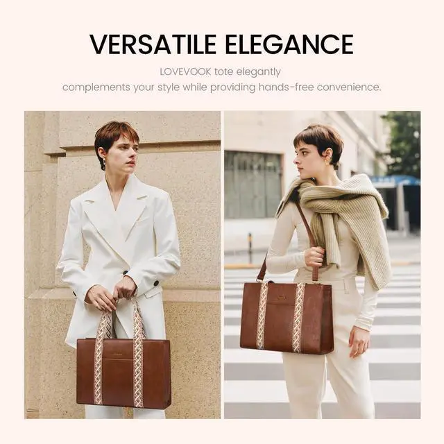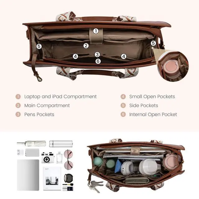 ^^ Multi-pocket Work Tote: This women's work bag offers 11 pockets, including padded sections for electronics and space for a water bottle. It accommodates a 15.6 -inch laptop, iPad, files, books, and clothes. Designed to be more versatile than other laptop totes, it's perfect for long office hours and business trips. ^^ Convertible & Chic Practical Tote Bag: Featuring an additional zip closure and front pocket, this bag ensures your items are easily accessible and secure. A retractable keychain hook helps you grab your keys effortlessly. Four metal feet protect your bag from damage. ^^