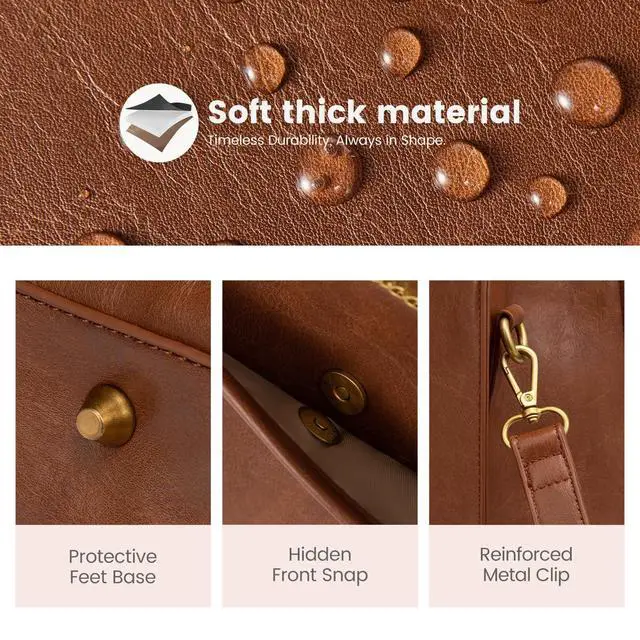 Material Laptop Bag: Designed with four layers of thick, soft leather and a high-density nylon lining for exceptional durability and shape retention. The high-performance artificial leather resists stains, water, and scratches, preventing stiffness and creases.