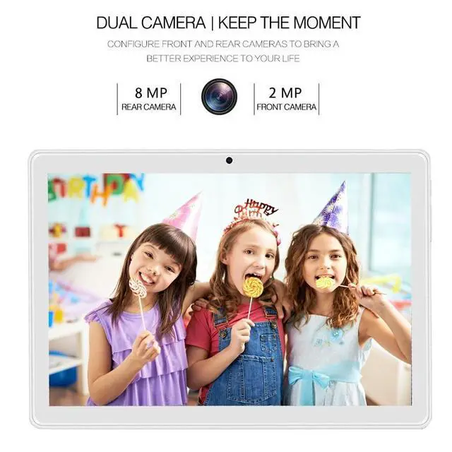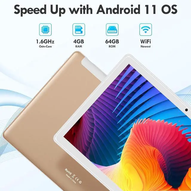 (Note: This is the WiFi tablet version, SIM card is not supported) ^^ Ultra High PerformanceThe newly updated Android 11 tablet is equipped with 64GB internal storage space (expandable to 256GB), 4-core fast response CPU, tablet frequency up to 1.6GH z, to ensure fast loading speed of the tablet and stable operating system. It allows you to switch apps easily and effortlessly. Meet your needs for gaming, watching movies, browsing websites, or reading. ^^ Resolution And Dual CamerasThe 10-inch tablets features an HD IPS screen that offers an unparalleled visual experience, excellent contrast and excellent amazing colors. 1280*800 widescreen appearance, the screen adopts G+G technology, so that the touch response is fast. The 10inch tablet Android 11 has dual 2MP + 8MP cameras to take great photos and make video calls, video conferences, etc. with family or friends.