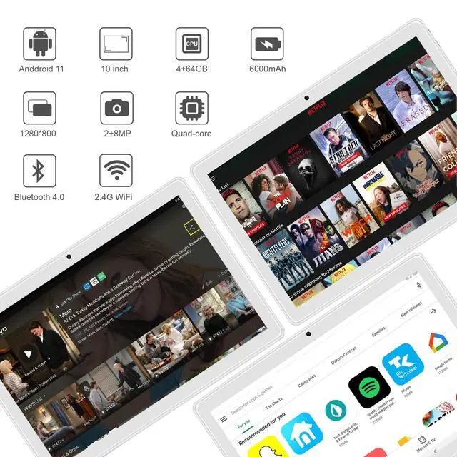 Efficient Android 11 SystemThe tablets is equipped with the latest Google Android 11 certification system. You can download Netflix, Youtube, Facebook, Skype, Disney+, Minecraft and other apps directly from Google Play. Perfect product includes^^tablet 10.1 ^^protective case^^US special charger^^ Type-C data ^^ OTG adapter^^capacitive pen^^user manual.